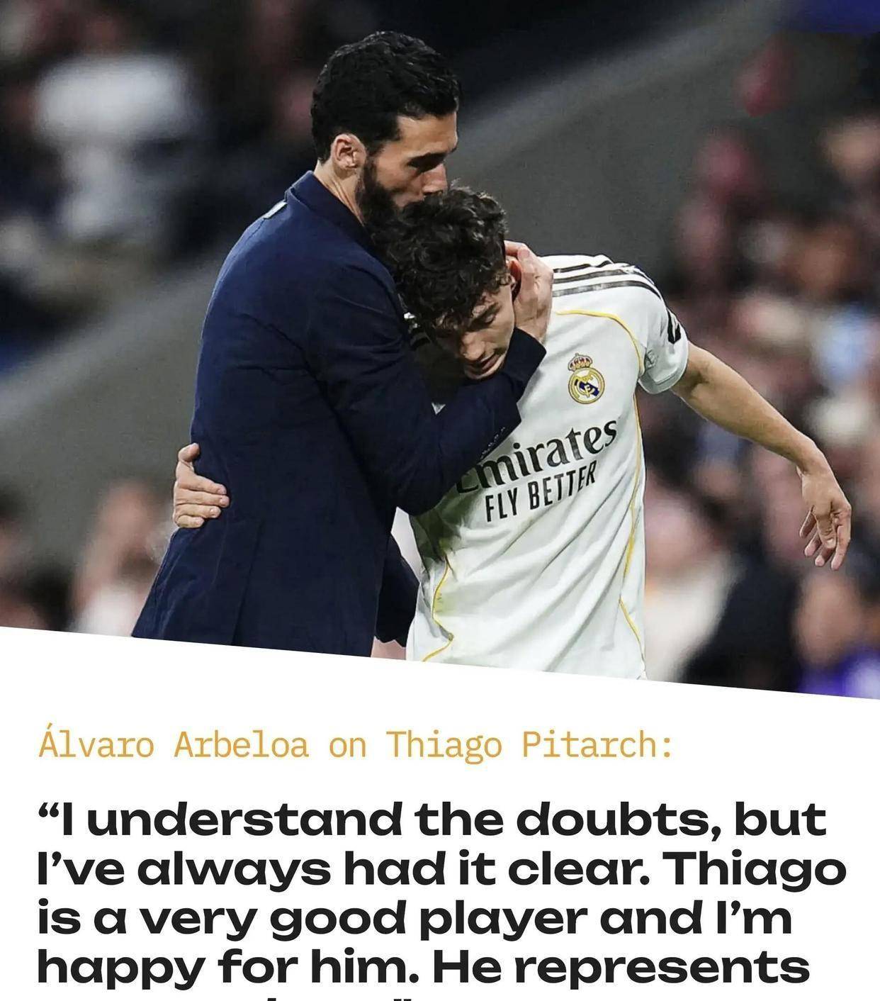 皮塔奇的崛起离不开主帅阿韦洛亚的坚定信任。早在2025年1月的一场队内教学赛,时任卡斯蒂亚主帅的阿韦洛亚就看中了这位小将,一路将他提拔至一线队。然而,3月23日的马德里德比,皮塔奇表现平平,赛后评分仅6.4分,批评声随之而来。“阿韦洛亚亲儿子”、“任人唯亲”的论调开始出现。